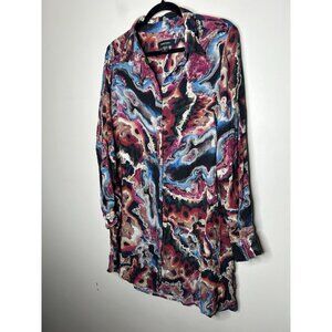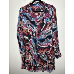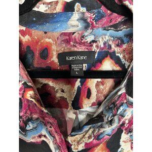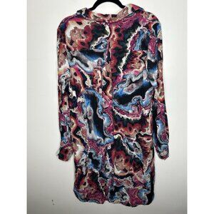 Karen Kane Womens Long Sleeve Button Up Tunic Shirt Abstract Colorful Size Large