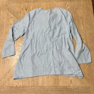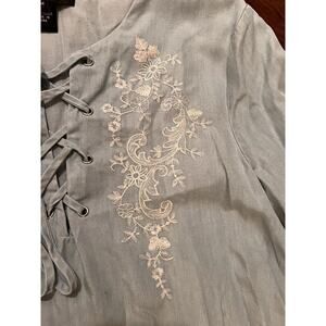 Karen Kane Women's Medium Lyocell Denim Floral Embroidered Lace Up Front Shirt