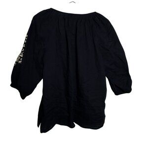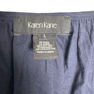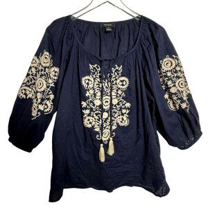 Karen Kane Women’s Navy Blue Peasant Blouse Size Large Embroidered Boho Cotton