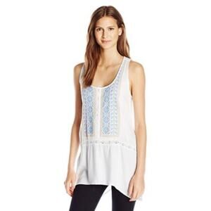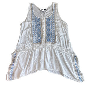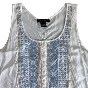 Karen Kane Women's Off White/Blue Embroidered Tank Tunic Top - Size Medium