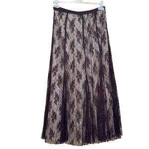 Karen Kane brown lace maxiskirt, large, witchy, whimsigoth, dark fairycore