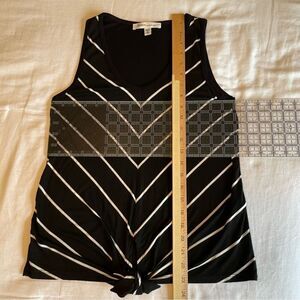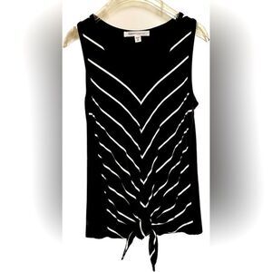 Karen Kane sleeveless top black and white striped front tie solid back xs