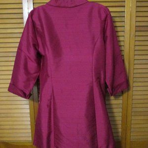 Karen Kane top 100% silk tunic cranberry red button down blouse like new size L