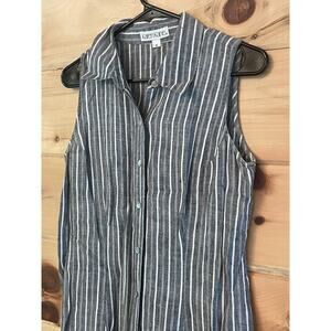 Karen Kane women's striped linen button down dress. Slits on sides. Size 8