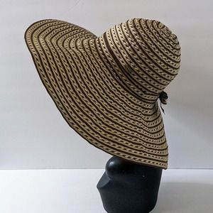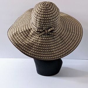 Karen Keith Large Brim Tan, Brown, Cream Sun Hat Size Med NWOT