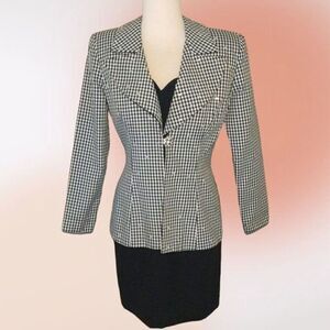 The Jacket is Black and White Check Embellished with Rhinestones and a Rhinestone Button.