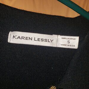 Karen Lessly Black Knit Blazer w/ Gold Trim Size S