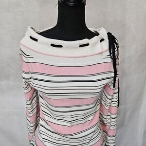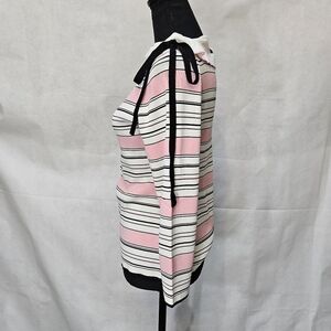 Karen Lessly Stripped Top 68% Rayon 32% Nylon Pink Black White Sz M