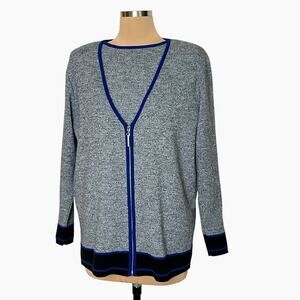 Karen Lessly Sweater Set Womens Large Zip Cardigan Sleeveless Top Gray Blue Trim