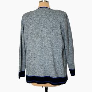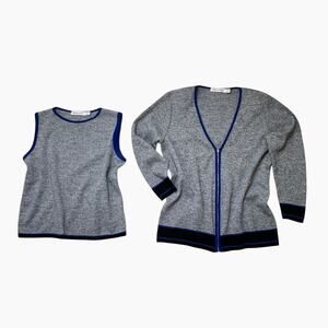 ITEM: Karen Lessly Sweater Set Women's Large Zip Cardigan Sleeveless Top Gray Blue Trim Vintage