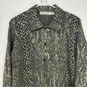 Karen Lessly Women Sz Large Animal Print Long Sleeve Gray Cream Button Cardigan