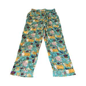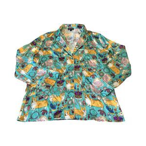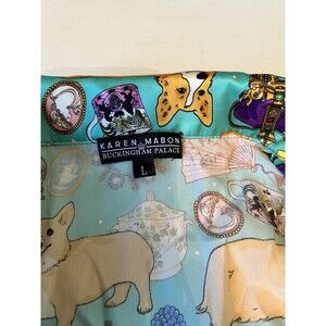 Karen Mabon Oh So Royal Turquoise Luxury 100% Silk Pajama Set Corgi Queen Jewels size large. Long sleeve and pant set.