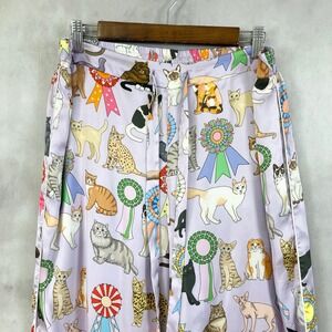 Karen Mabon Womens Pajama Set L Cat Show Print Satiny Lounge Sleepwear Whimsy