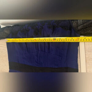 Karen Millen 100% Silk Fit n Flare Dress Deep Blue Black Lace Sleeves Size 8 ASO