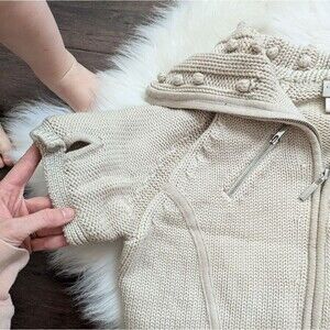 Karen Millen 100% Wool Soft Short Sleeve Full Zip Cardigan Size 2 cream white