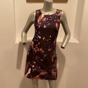 Karen Millen Abstract Print Sleeveless Mini Sheath Dress Purple Size 4 New
