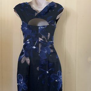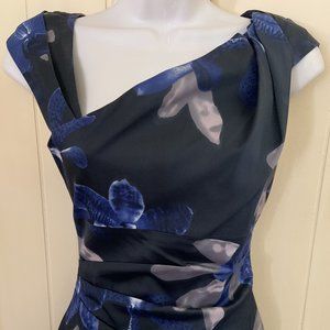 Karen Millen Black Floral One Shoulder Fitted Bodycon Dress Size 2