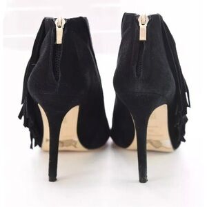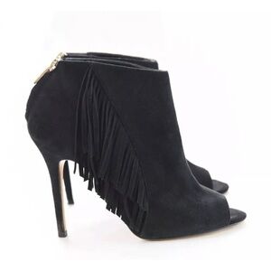 Karen Millen Black Fringe Suede Western Stiletto Heel Boot Bootie US Sz 7 EU 38