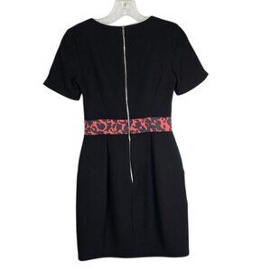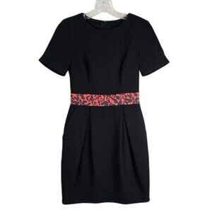Karen Millen Black Mini Dress Animal Print Round Neck Short Sleeves Womens 4
