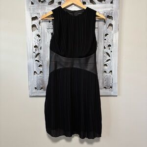 Karen Millen Black Pleated Faux Leather Waist Fit Flare High Neck Mini Dress