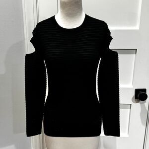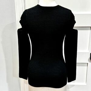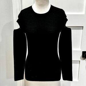 Karen Millen Black Ribbed Cold Shoulder Top. Size Small.