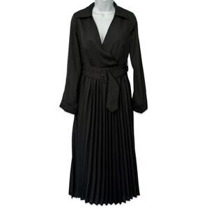 Karen Millen Black Satin Georgette Long Sleeve Pleated Midi Dress size 4 NEW Tag