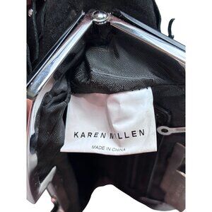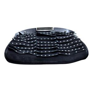 Crafted with elegance, this Karen Millen clutch features luxurious sheep suede adorned with stylish metal studs. The leather trim adds a sophisticated touch while the spacious interior provides ample room for essentials. A chic accessory suitable for formal events and evening outings, combining practicality with high fashion.