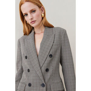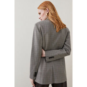 Karen Millen Blazer Check Military Longline Double Breasted Sz 6 US Women's