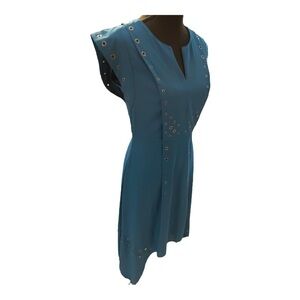 Karen Millen Blue Embellished Eyelet Midi Dress Size 4
