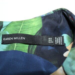 Karen Millen Blue and Pink Fit and Flare Tropical Floral Print Dress Size 2