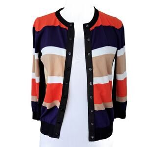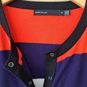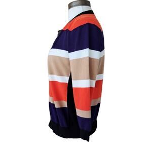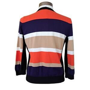 Karen Millen Bold Stripe Knit Cardigan Sweater Medium Purple Orange Tan