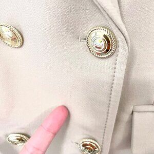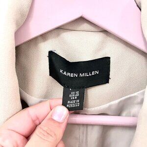 This is a gently used Karen Millen Compact Essential Tailored Double Breasted Blazer Beige Size 8. In excellent condition. Has a few minor marks and minor thread flaw. See all pics for condition.