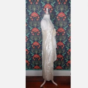 It's made of sequin poly and is a size UK 10/US 6.