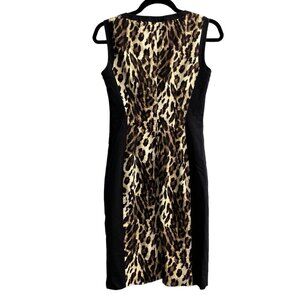 Karen Millen Dress Womens 6 Mixed Leopard Print Black Zip Front Sheath Classic