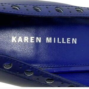 Karen Millen Electric Blue Patent Calf Leather Peep Toe Pumps - Size 8.5 B.