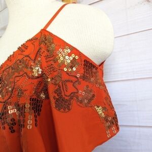 Karen Millen Embellished Flounce Silk Mini Dress in Burnt Orange Size 4