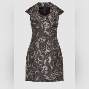 Karen Millen Italian Jacquard Deep Scoop Neck Dress Grey Metallic US 12 UK14 NWT