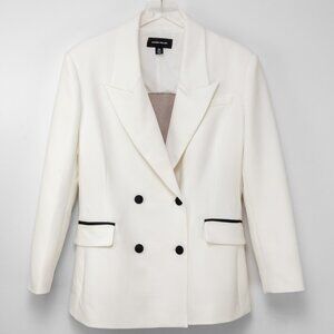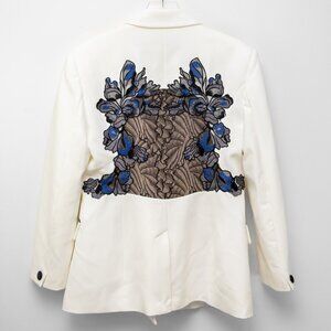 Karen Millen Lace Appliqué Contrast Tailored Tuxedo Jacket White Blue Black 10