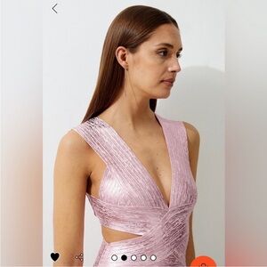 EUC uniquely you!! Stunning Karen Millen Metallic Pink Cut Out Bandage Textured One Piece Bathing Suit sz L