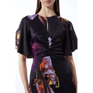 Karen Millen Midnight Floral Satin Crepe Woven Angel Sleeve Maxi Dress Size 6P