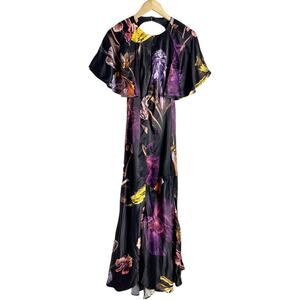 Karen Millen Midnight Floral Satin Angel Sleeve Maxi Dress Size 6 Petite