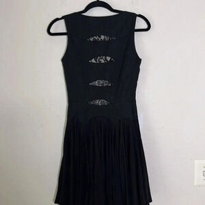 New! Special cut in a gorgeous pleated skirt jersey made from a fine beautiful lace. Lace and jersey. From armpit to armpit is about 15 1/2 inches and 35 inches long. It has a side zipper. Beautiful designer dress that is fully lined.