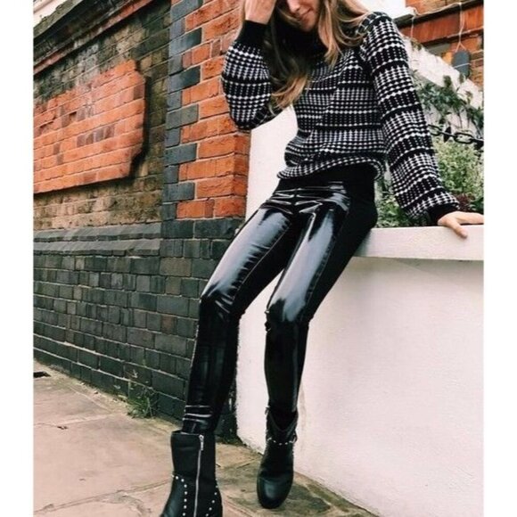 Karen Millen PX065 Black Leggin High Shine Slim Skinny Pants Leggings