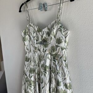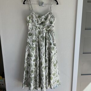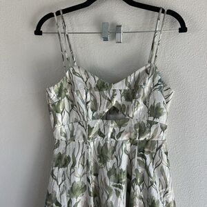 Karen Millen Pine Floral Metallic Midi Dress Cut Out Spaghetti Strap Womens US 6