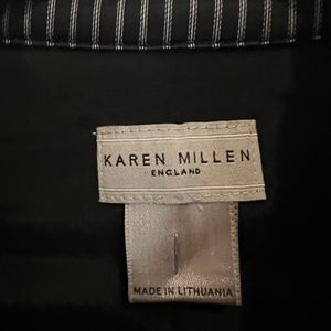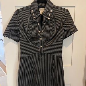 Karen Millen Size 2 Pinstripe Dress. Preowned but in great condition. Lots of detail in the collar, cuffs and hem. Please see the photos!