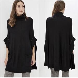 Karen Millen Poncho Size XS/S Black Wool Blend Turtle Neck Jeweled Quiet Luxury