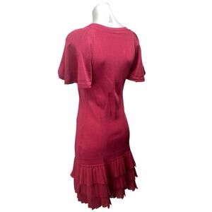 Karen Millen Red Knit Short Sleeve V Neck Tiered Ruffle Mini Bodycon Dress Sz 3
