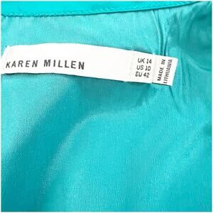 Karen Millen Satin Skater Dress Size 10 Fit & Flare Teal Blue Party Cocktail