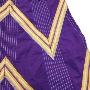 Stylish A-line skirt by Karen Millen. Features vibrant purple fabric with striking yellow and white embroidered stripes. Perfect for any occasion.