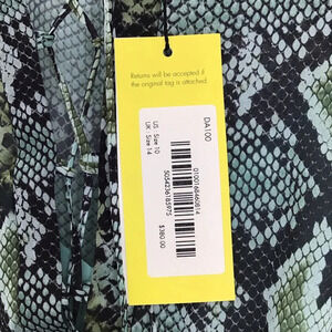Karen Millen Snake Print Ruffle Bell Sleeve Midi Dress Green/Black NWT Size 14